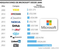 Microsoft cierra casi 30 años de evolución tecnológica comprando en 2022 la empresa Activision Blizzard por un importe cercano a los US$69.000 millones, desbancando así a LinkedIn, que anteriormente ocupaba la primera posición del ranking de las adquisiciones más caras de la compañía. Activision cuenta con títulos tan famosos como Warcraft, Diablo, Overwatch, Call of Duty y Candy Crush, además de ser uno de los principales actores de la Major League Gaming.